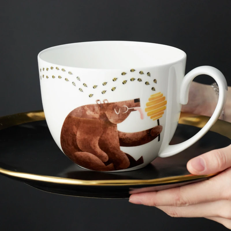 . (Zniżka 37%) Tanie Śliczne niedźwiedź brunatny o dużej pojemności lody kubki wody kubki 600ML kubki kreskówka wyrażenie projekt ceramika filiżanka do kawy i mleka Cena.