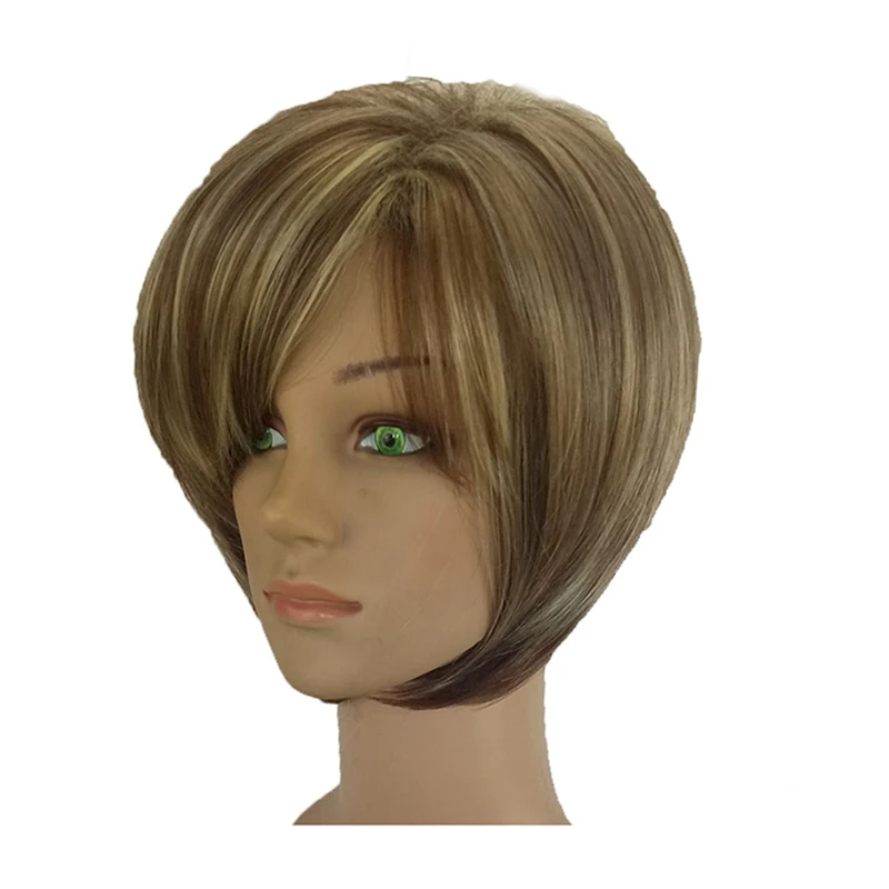 Product Name: HAIRJOY kobiety włosy syntetyczne peruka Bob fryzura Pixie Style z Bangs blond brązowy dwukolorowy peruka krótka darmowa wysyłka