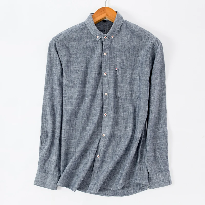 Product Name: Męska koszulka z długim rękawem, z długim rękawem, bawełna lniana, łatka, pojedyncza kieszeń na piersi, guzik, kołnierz, lato, cienki oddech, solidne koszule na co dzień