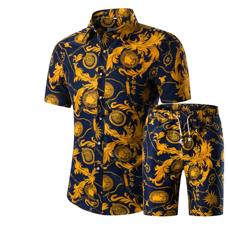 Product Name: Nowa moda męska koszule + zestaw szortów lato w stylu casual, z nadrukami Shirt Homme krótki mężczyzna sukienka z nadrukiem zestawy Plus rozmiar 5XL