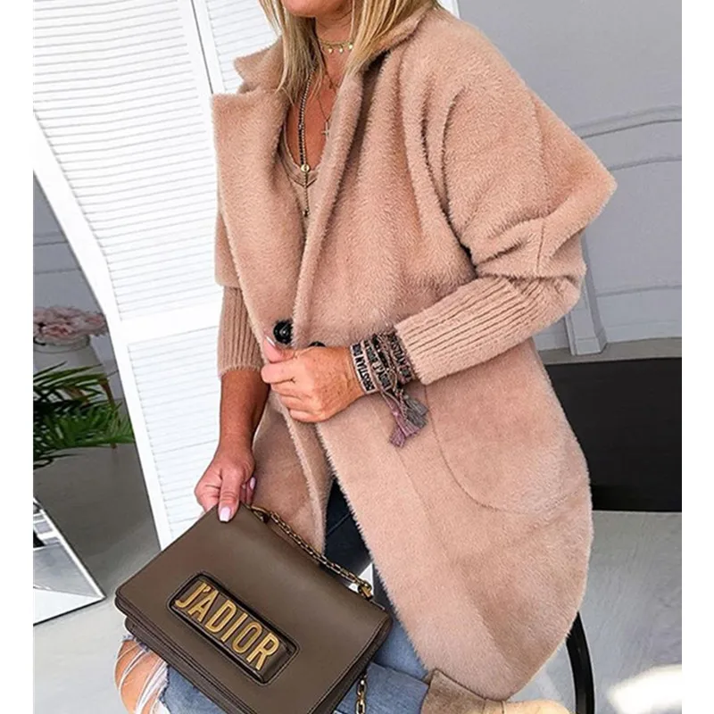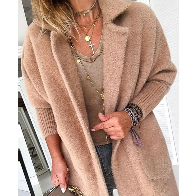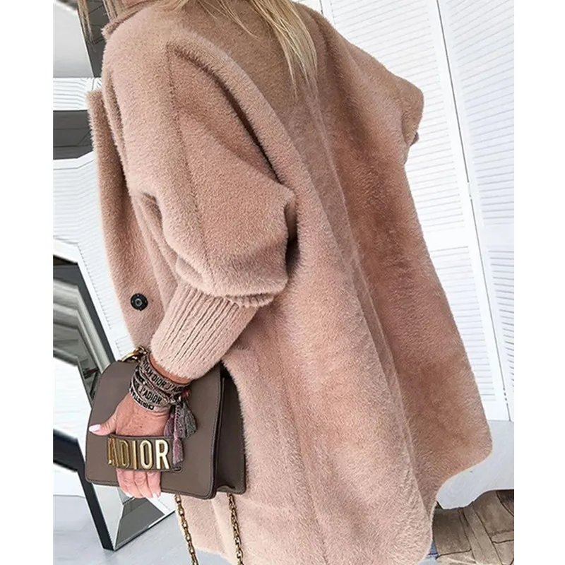 Product Name: Damskie zimowe ciepłe Khaki solidne puszyste otwarte przednie długi płaszcz miękki outwear kobiety ciepłe kurtki