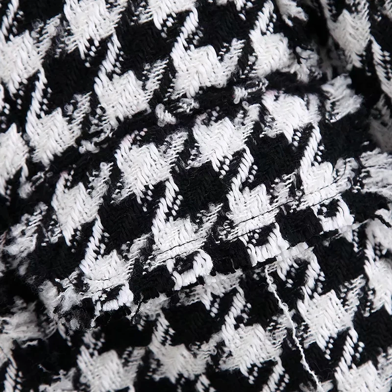 Product Name: Kobiety tweedowe kurtki 2019 moda biurowa, damska czarne frędzle Houndstooth płaszcze kobieta jesień vintage gruby płaszcz w kratę dziewczyny chic