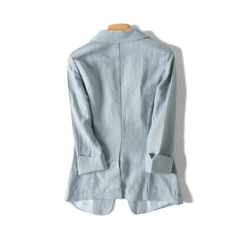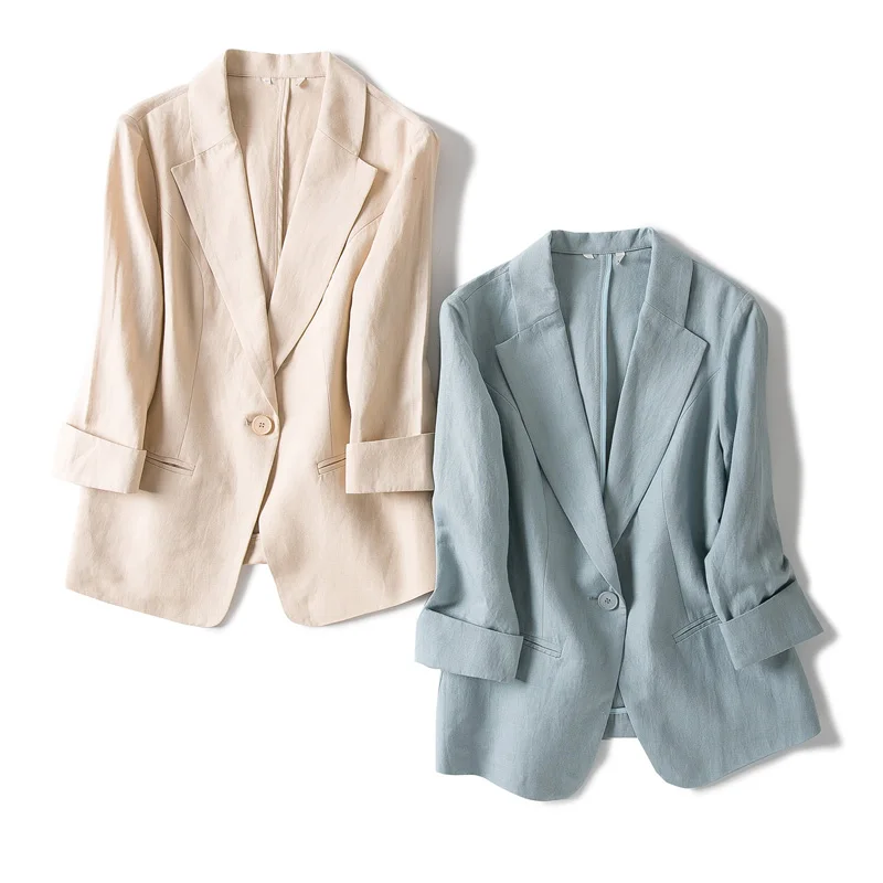 Special Offer Kobiety lniane marynarki solidna 3 4 rękaw zapinany na jeden guzik Office Lady Blazer 2019 nowa, jesienna zimowa odzież zewnętrzna Discount 48% Today!