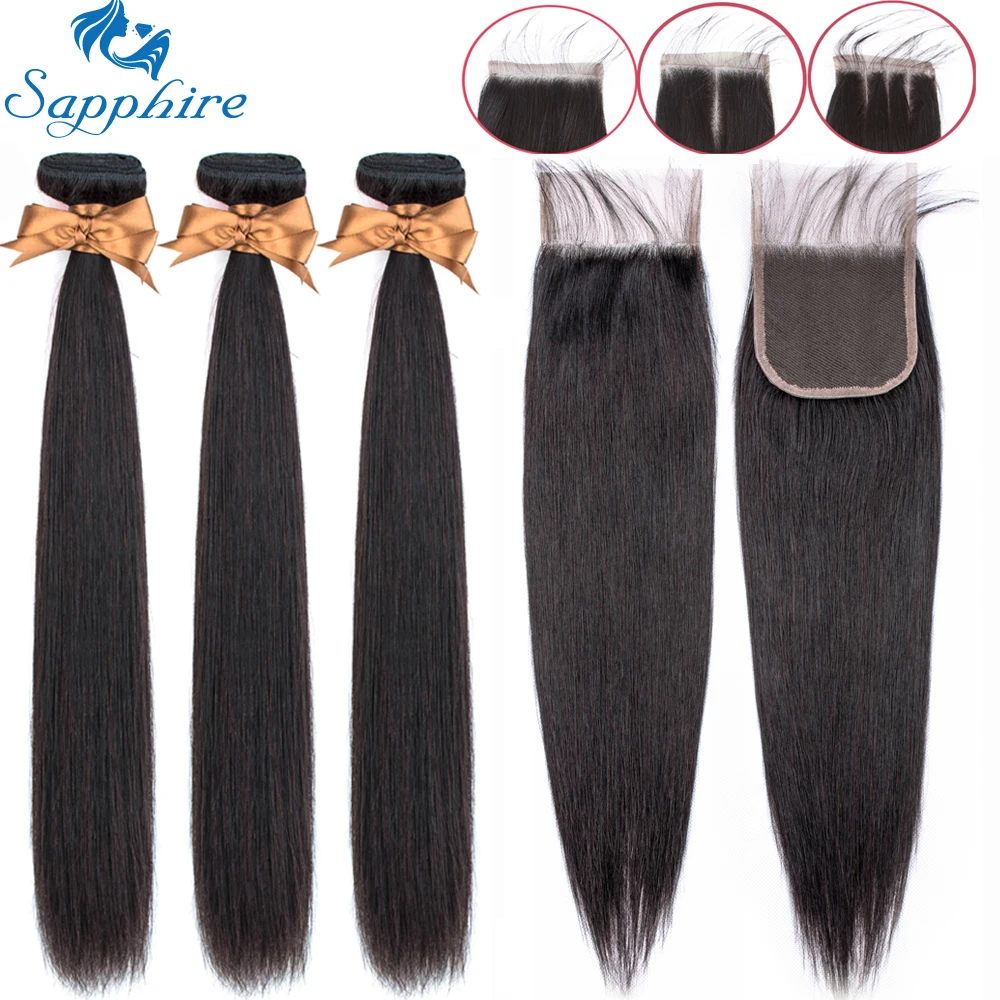 Product Name: Sapphire proste zestawy z zamknięciem brazylijskie włosy wyplata wiązki z zamknięciem wiązki ludzkich włosów z zamknięciem do przedłużania włosów