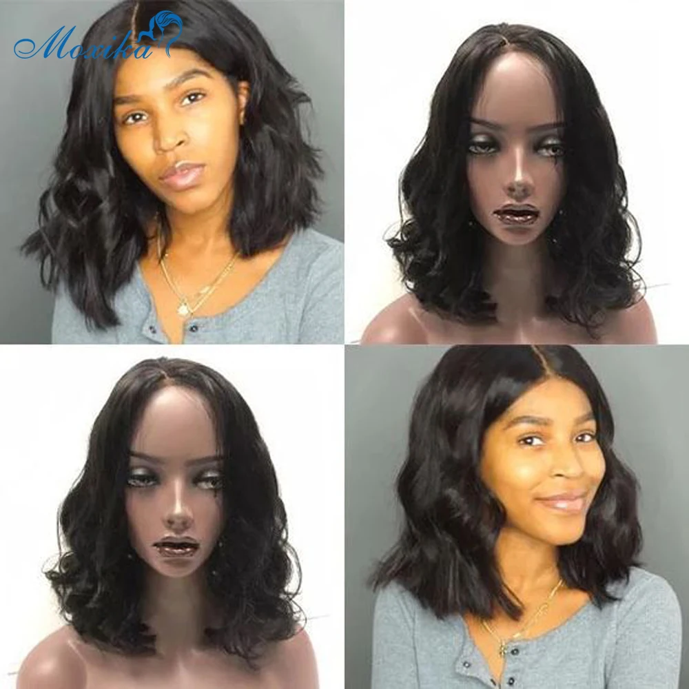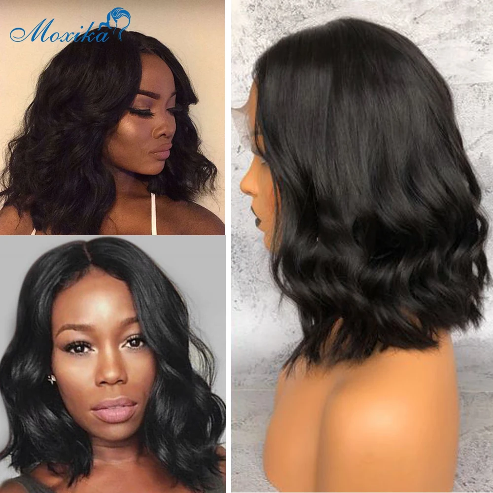 . (Zniżka 55%) Skup Moxika faliste peruka z krótkim bobem koronki przodu peruki z ludzkich włosów 13*4 M włosy brazylijskie remy splot koronki przodu peruk wstępnie oskubane środkowa część Najtaniej Cena.