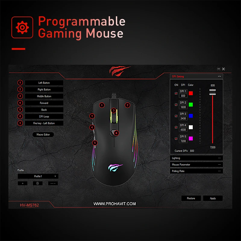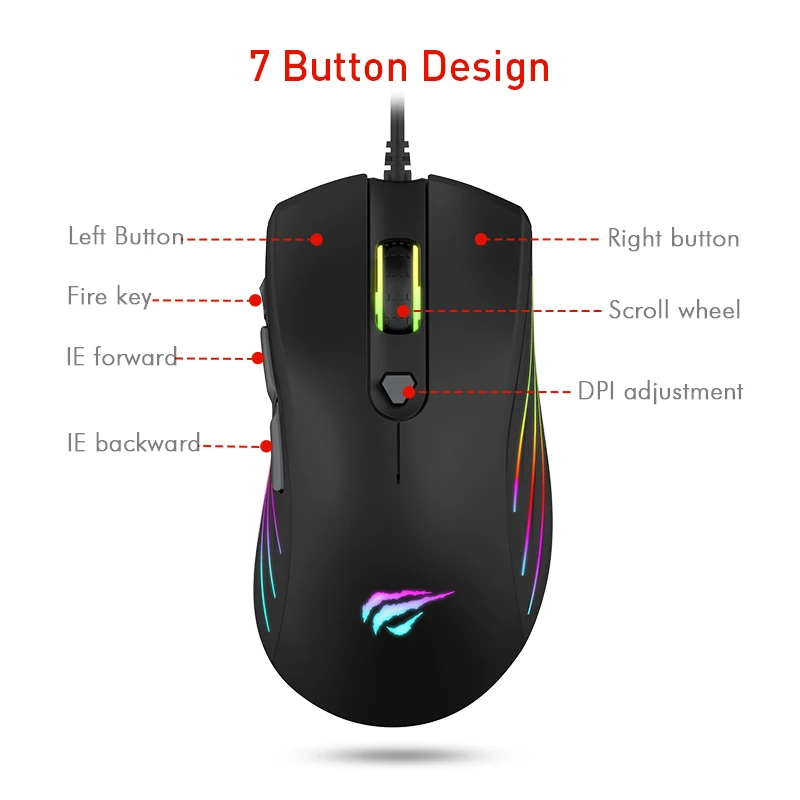 Product Name: Mysz do gier HAVIT RGB podświetlana 7200DPI programowalna 7 przycisków USB przewodowa mysz optyczna dla komputer stancjonarny Laptop HV MS762