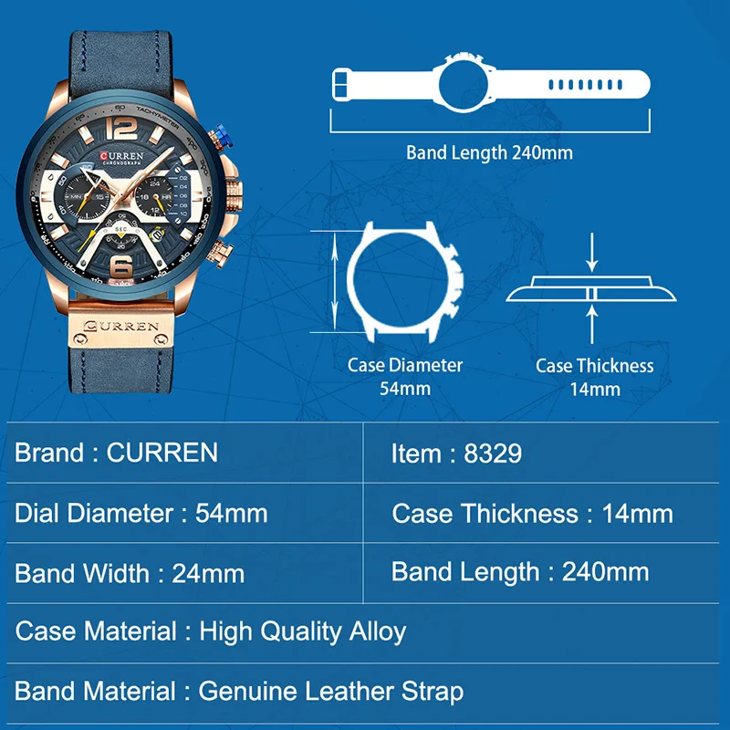 Product Name: Curren męskie zegarki Top marka luksusowy skórzany chronograf zegarki męskie zegarek na rękę mężczyźni wodoodporne luksusowe męskie zegarki