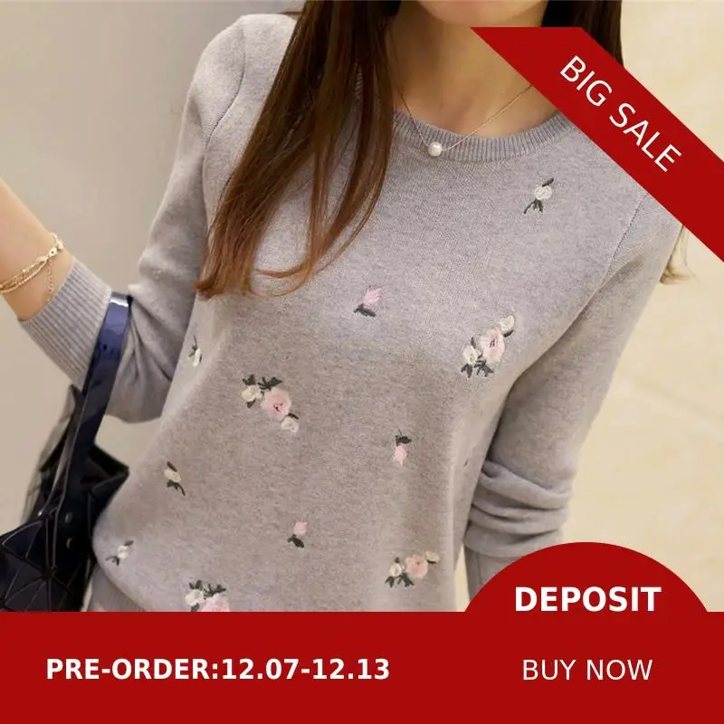 . (Zniżka 75%) Skup Tanie Lcybhe 2019 jesień sweter kobiety haft dzianiny zimowe kobiety sweter i pulower kobiet koszulka trykotowa Jumper Pull Femme Ceny.