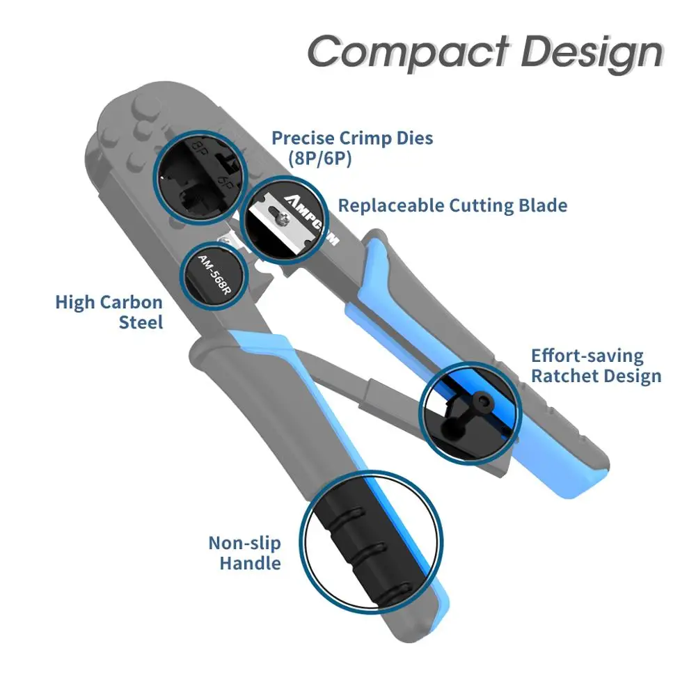 Special Offer AMPCOM rj45 zaciskarki RJ11 RJ45 narzędzie do zaciskania sieć ethernet przewód lan crimper szczypce do ściągania izolacji dla 6P 8P RJ 11 RJ 12 RJ 45 Discount 25% Today!