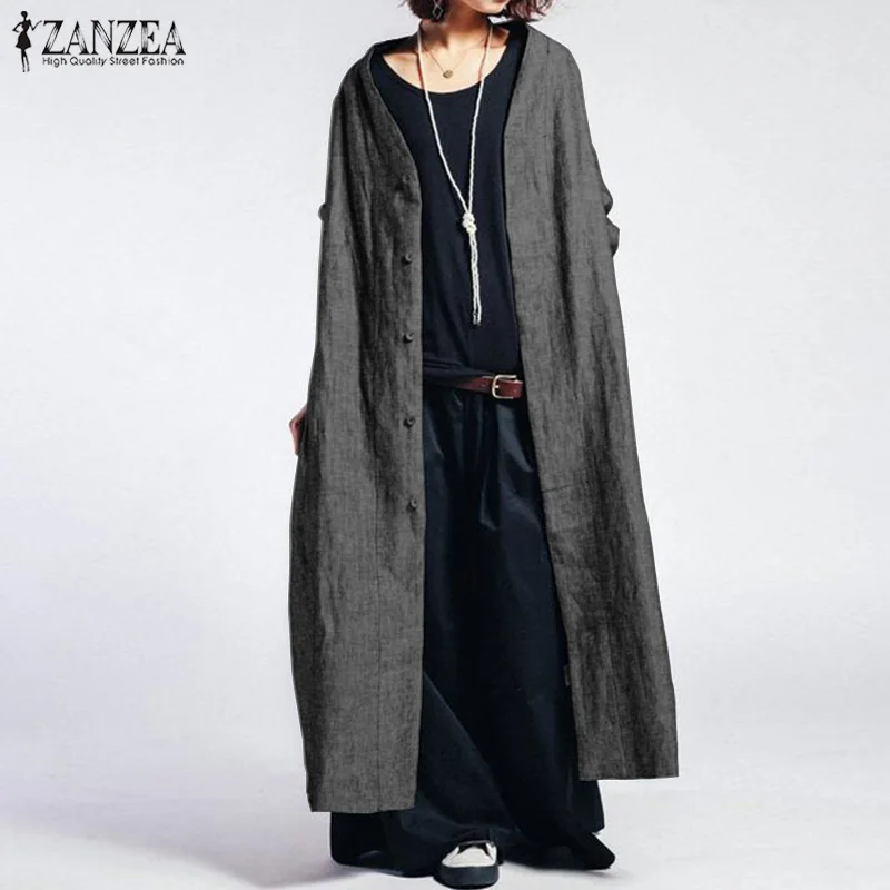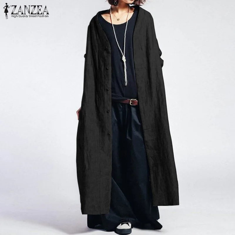 Product Name: 2019 ZANZEA kobiety w stylu Vintage z długim rękawem V Neck przyciski kurtki wiosna Cotton Linen Cardigan bluzka typu oversized Casual Loose długie kurtki