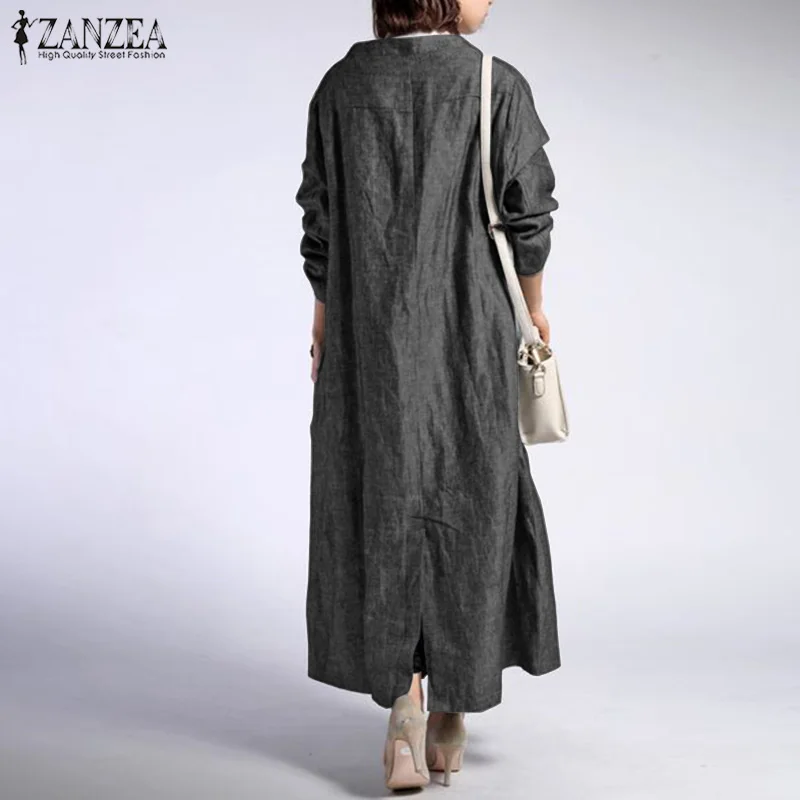 Special Offer 2019 ZANZEA kobiety w stylu Vintage z długim rękawem V Neck przyciski kurtki wiosna Cotton Linen Cardigan bluzka typu oversized Casual Loose długie kurtki Discount 42% Today!