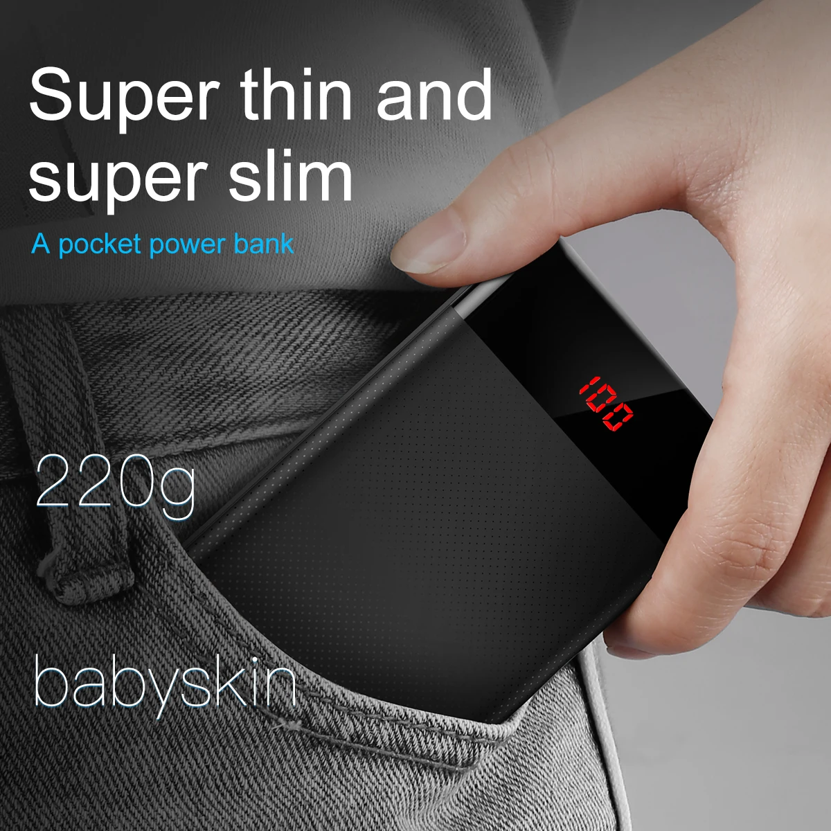 Product Name: Baseus Slim 10000mAh Power Bank 10000 USB LCD Powerbank przenośna bateria zewnętrzna ładowarka do telefonu komórkowego Xiaomi Poverbank