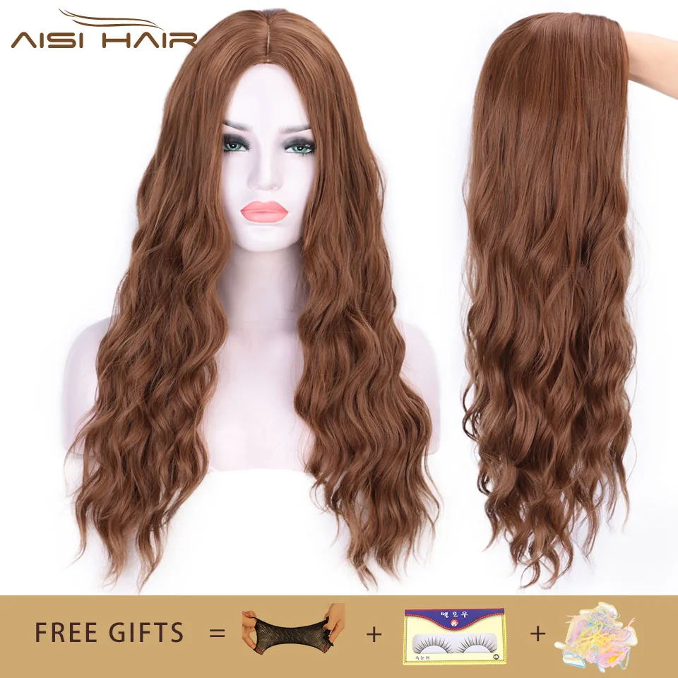 . (Zniżka 45%) Tanie I s a wig Water Wave peruki syntetyczne peruki z długimi włosami dla kobiet brązowe peruki Cosplay środkowa część natura żaroodporne włosy Ceny.