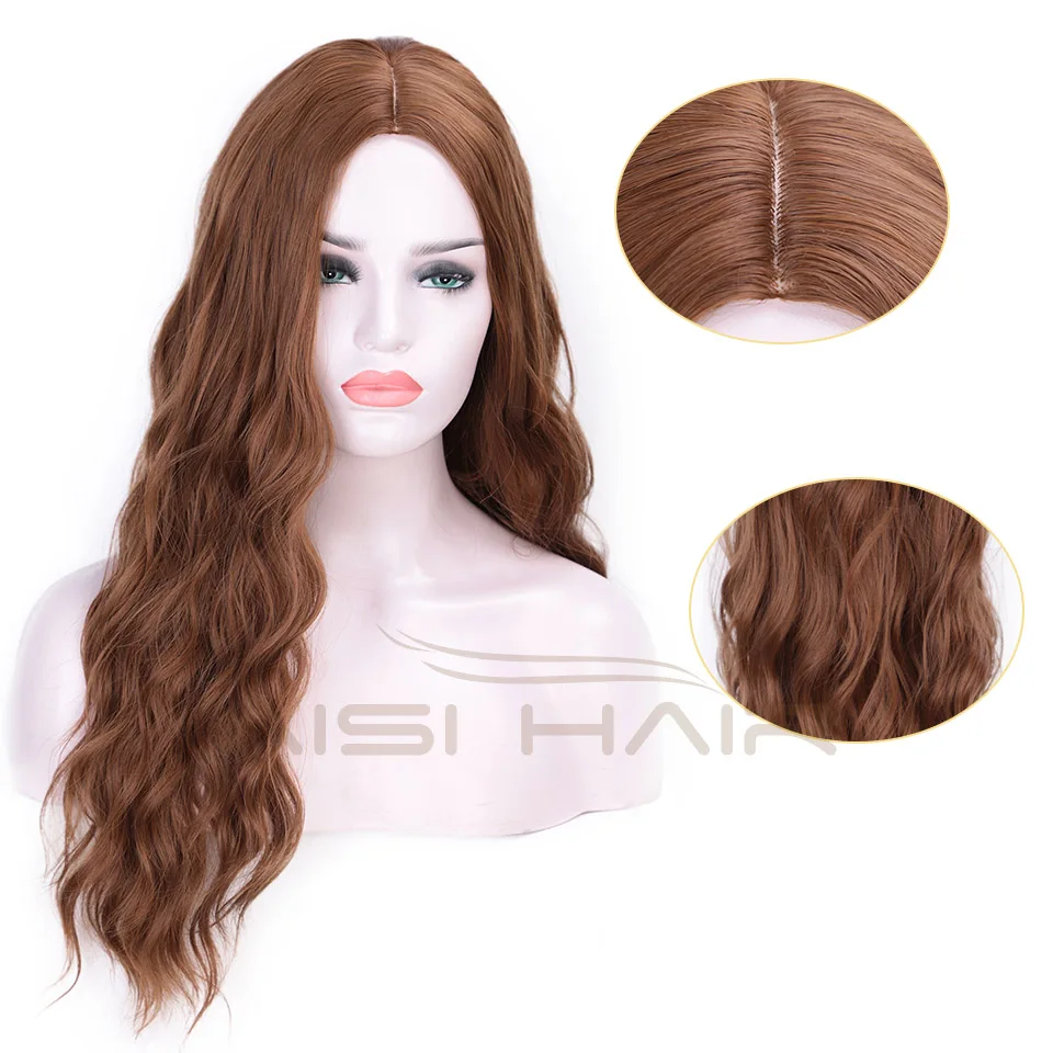 Product Name: I s a wig Water Wave peruki syntetyczne peruki z długimi włosami dla kobiet brązowe peruki Cosplay środkowa część natura żaroodporne włosy