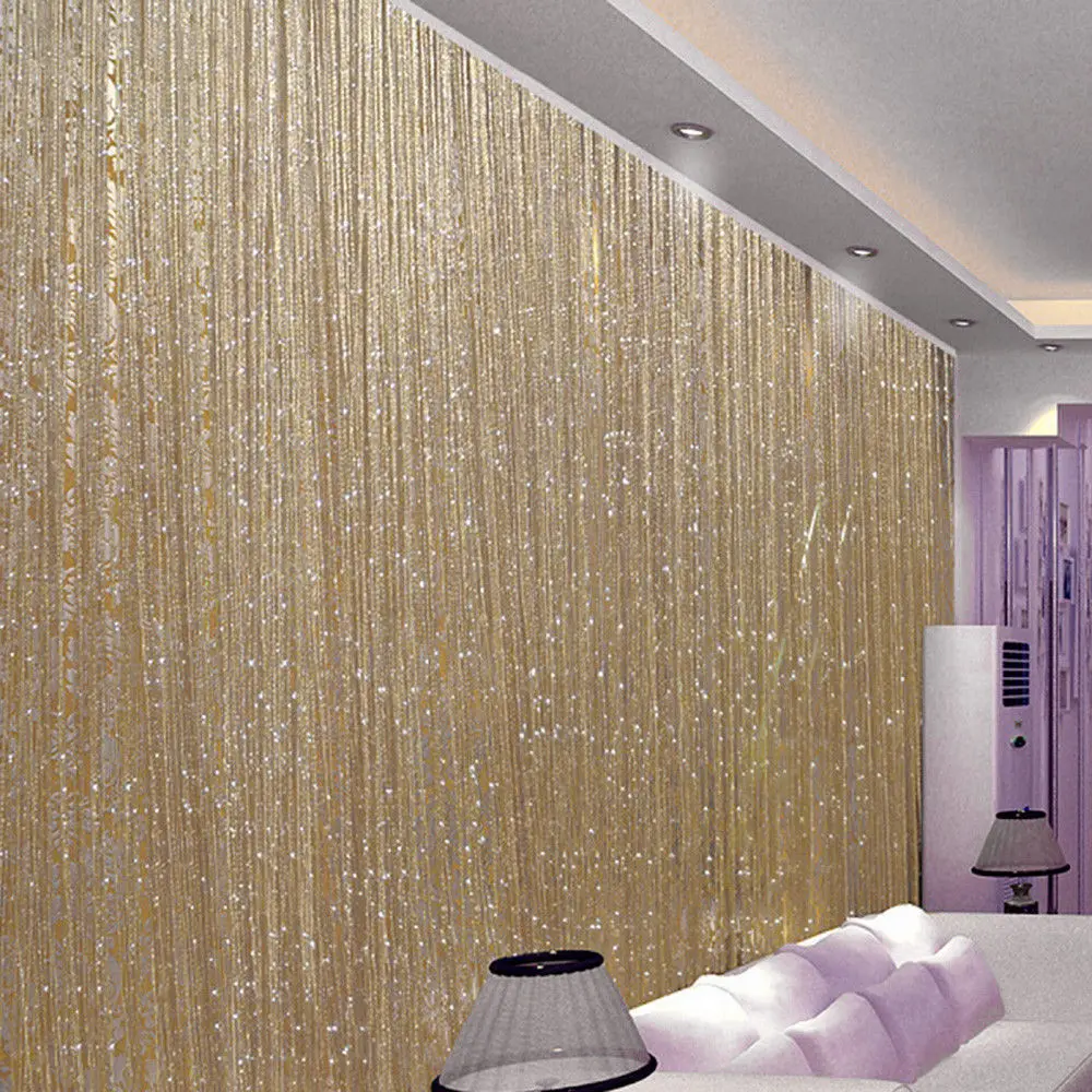 . (Zniżka 31%) Skup 3x2.9m zasłona sznurkowa linia błyskowa błyszczące Tassel struny drzwi okno dekoracyjna zasłona rozdzielana brokat Valance Home Decoration Najtaniej Cena.