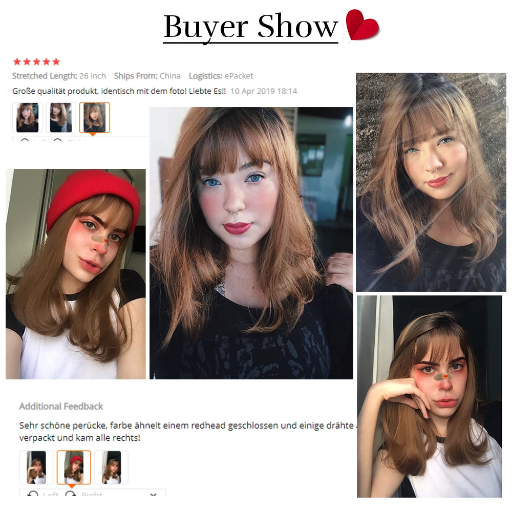 Product Name: Element 16 Cal syntetyczna peruka z grzywką naturalny nagłówek Ombre brązowy kolor moda na imprezę cosplay wymiana peruki dla kobiet