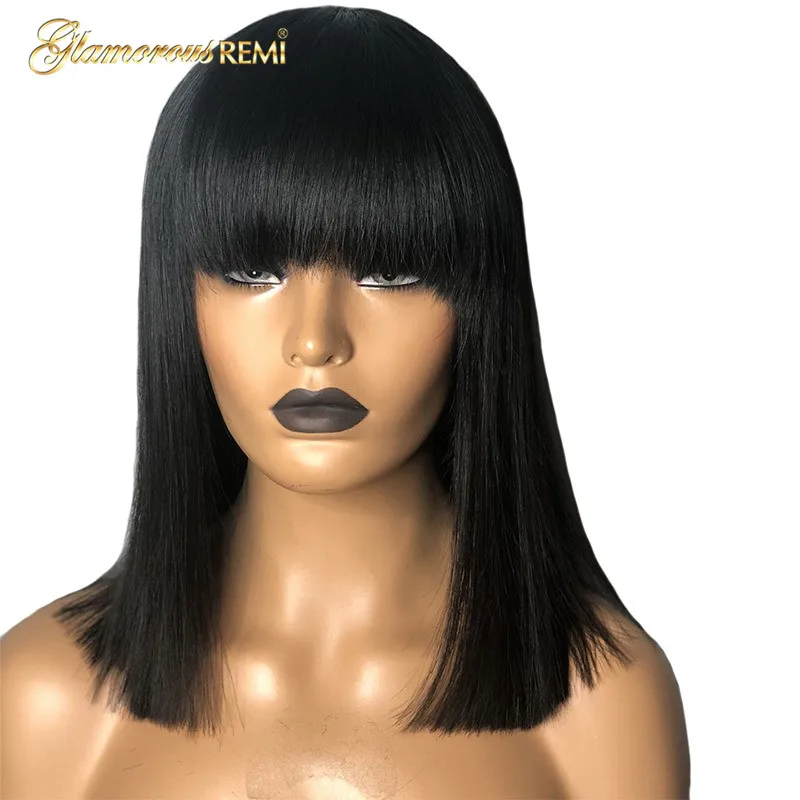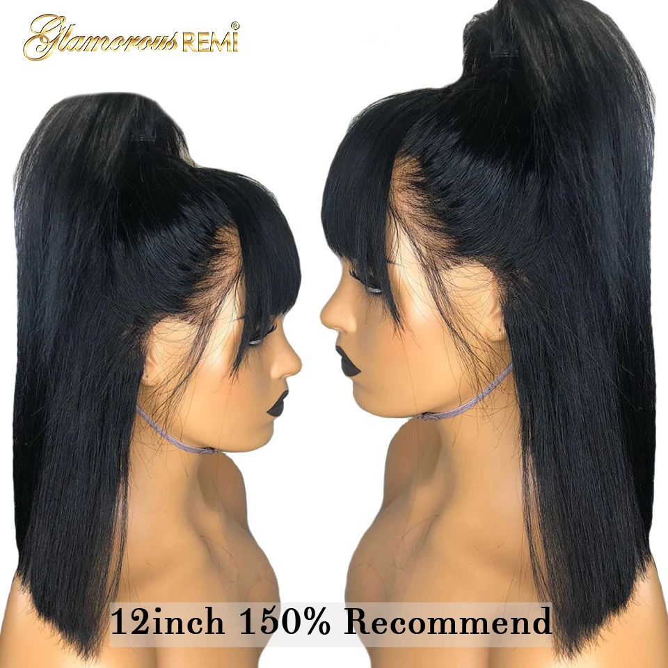Product Name: 13*4 peruka z krótkim bobem brazylijski koronki przodu włosów ludzkich peruki z grzywką pre oskubane Natural Color bielone węzłów Remy włosy 150% peruka