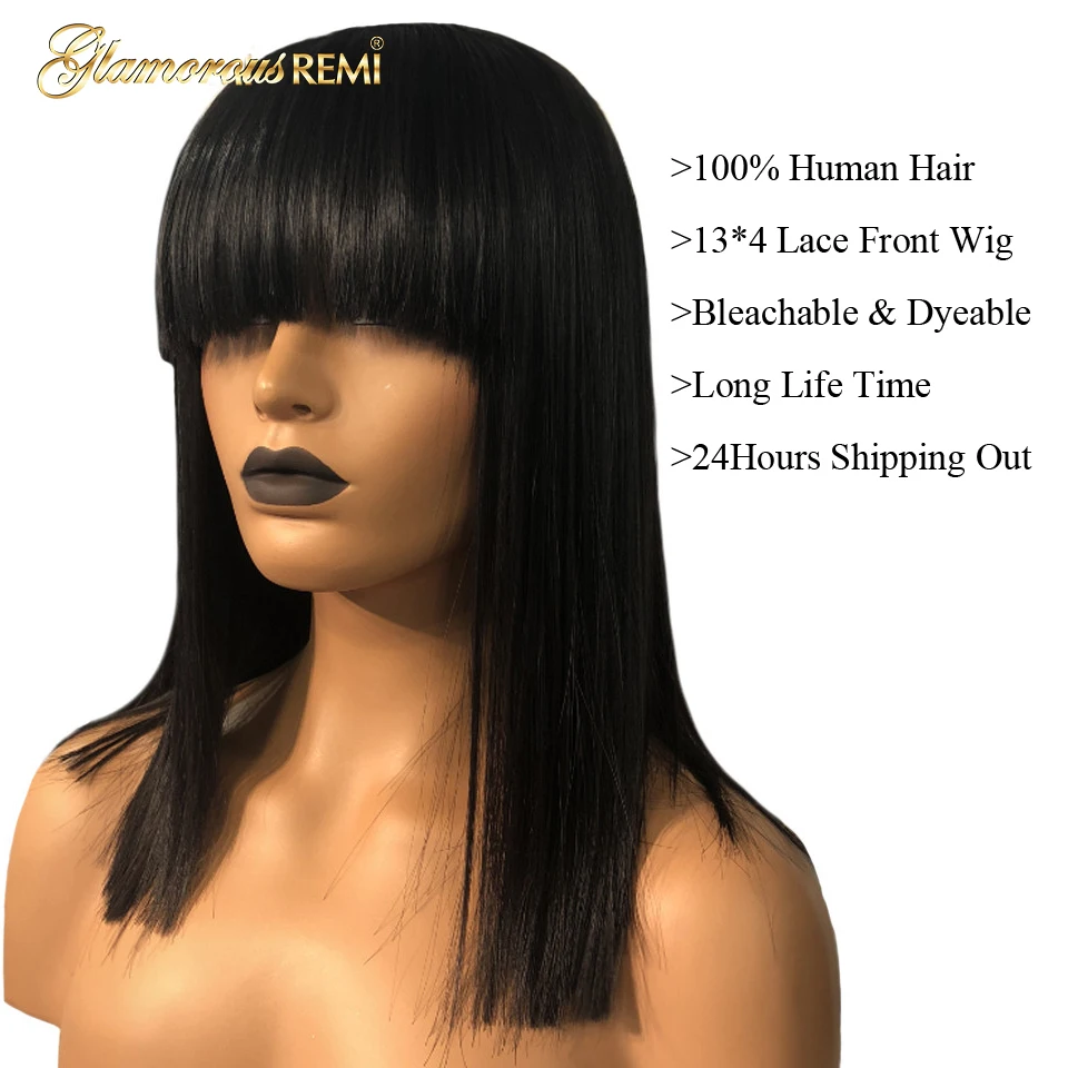 Special Offer 13*4 peruka z krótkim bobem brazylijski koronki przodu włosów ludzkich peruki z grzywką pre oskubane Natural Color bielone węzłów Remy włosy 150% peruka Discount 28% Today!
