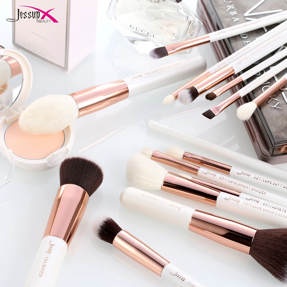Special Offer Jessup 15Pcs Zestaw Profesjonalnych Pędzelków Podkładowych do Makijażu Zestaw Narzędzi do Makijażu Puder Cień Perłowa Biel Złoty Róż Discount 28% Today!