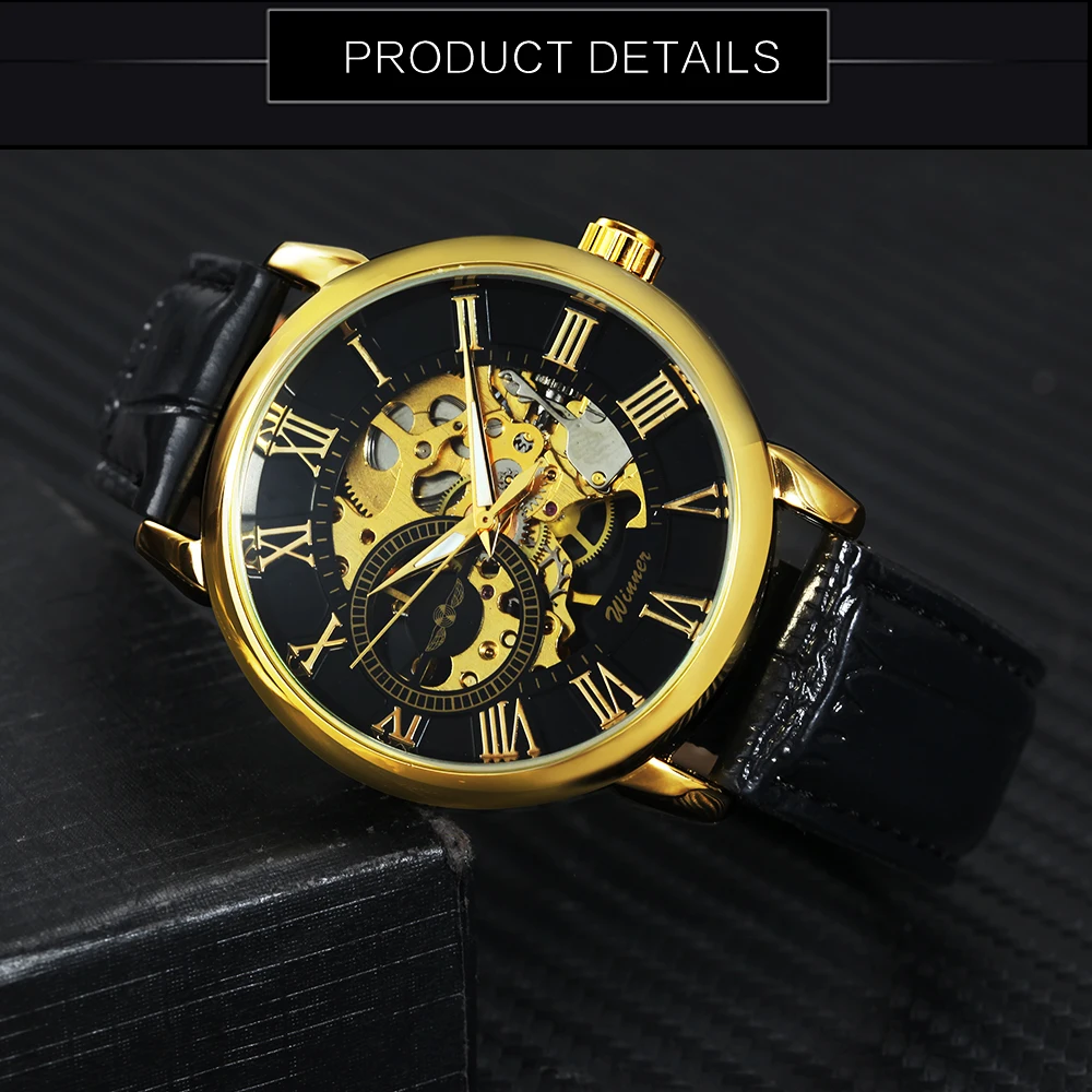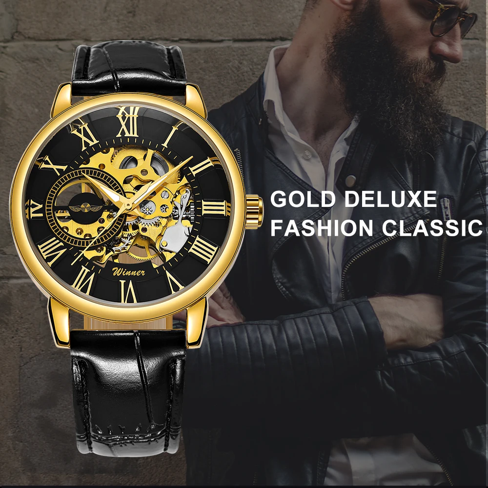 Product Name: Zwycięzca oficjalnych modne męskie zegarki Top marka luksusowe szkielet zegarek mechaniczny mężczyźni skórzany pasek mody zegarek na co dzień sukienka