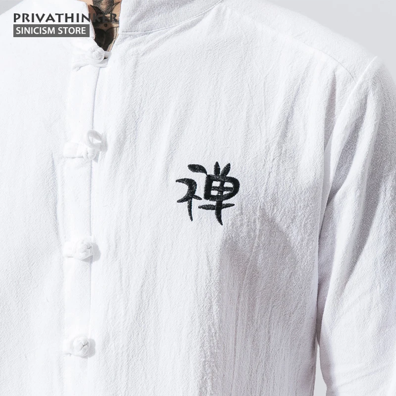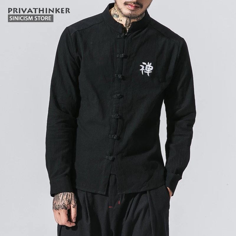 Special Offer Sklep sinicism bawełniane lniane koszulki z haftem męskie koszule z długim rękawem Zen buddyzm chińskie tradycyjne ubrania przycisk koszula męska Discount 48% Today!