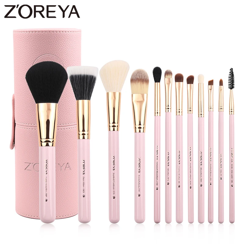 Special Offer Zoreya marka 12 sztuk kolorowe luksusowe zestaw pędzli do makijażu profesjonalne włosy syntetyczne zestaw szczotek Lip blush makijaż szczotki kosmetyczne Discount 49% Today!