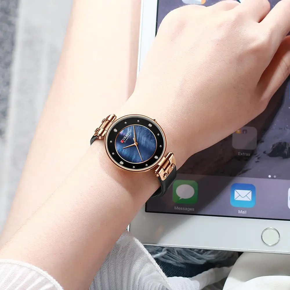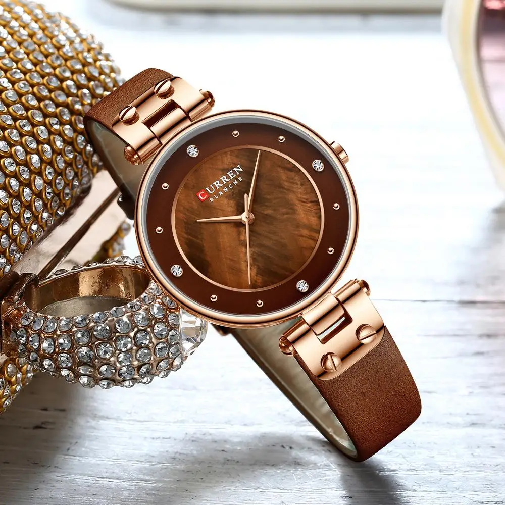 Product Name: CURREN proste dżetów uroczy zegarek dla kobiet kwarcowe zegarki skórzany pasek zegar kobieta sukienka na rękę zegarek damski