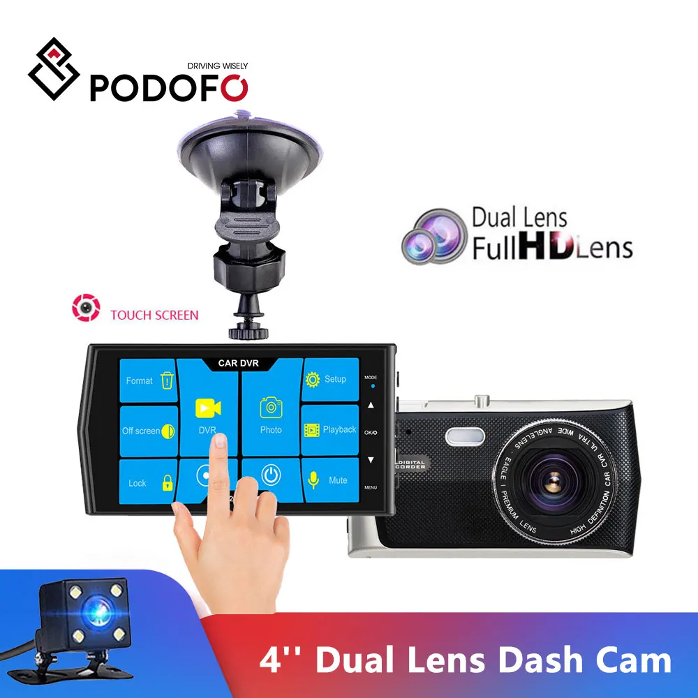 Special Offer Podofo nagrywarka dvd z ekranem dotykowym 4 kamera na deskę rozdzielczą podwójny obiektyw wideorejestrator samochodowy z noktowizorem autoregistrars wideorejestrator z kamerą tylną Discount 23% Today!