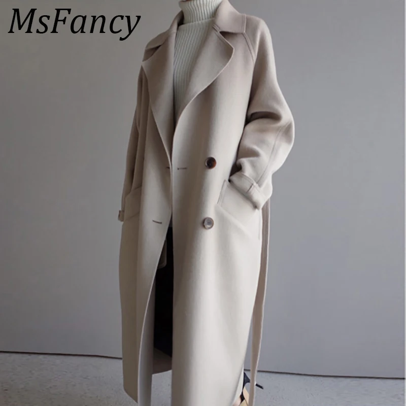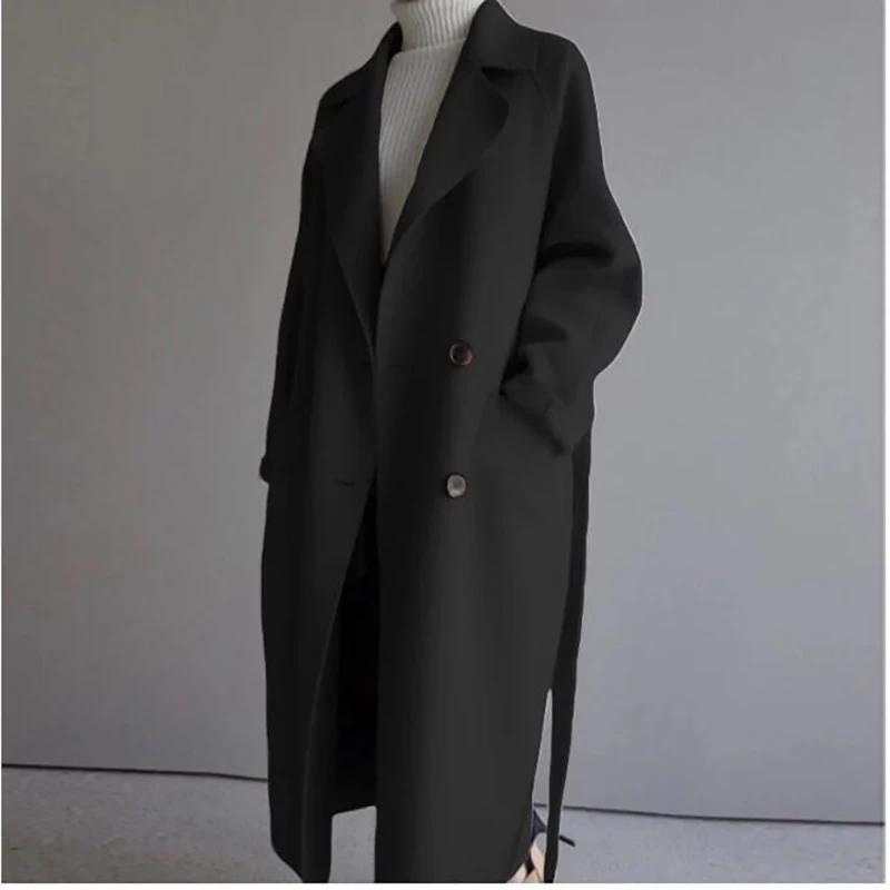 Product Name: 2019 zimowe płaszcze damskie jednolity kolor dwustronny wełniany płaszcz luźny dwurzędowy długi płaszcz