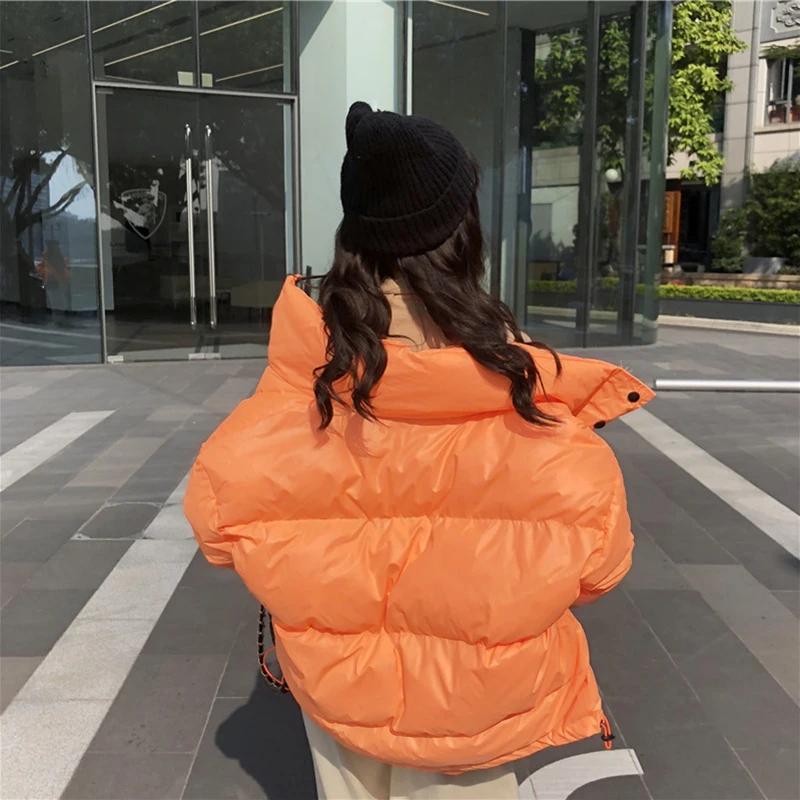 Product Name: Jasne kolory kurtka zimowa damska Parka ciepła gruba jednolita, krótka w stylu bawełny wyściełane parki płaszcz luźny stojak kołnierz znosić