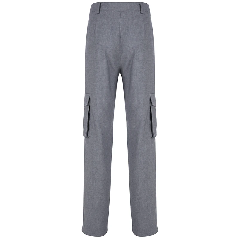 Product Name: Sweetown szary urząd Lady eleganckie proste spodnie z wysokim stanem Streetwear wiosna jesień Zipper Fly odzież robocza eleganckie długie spodnie