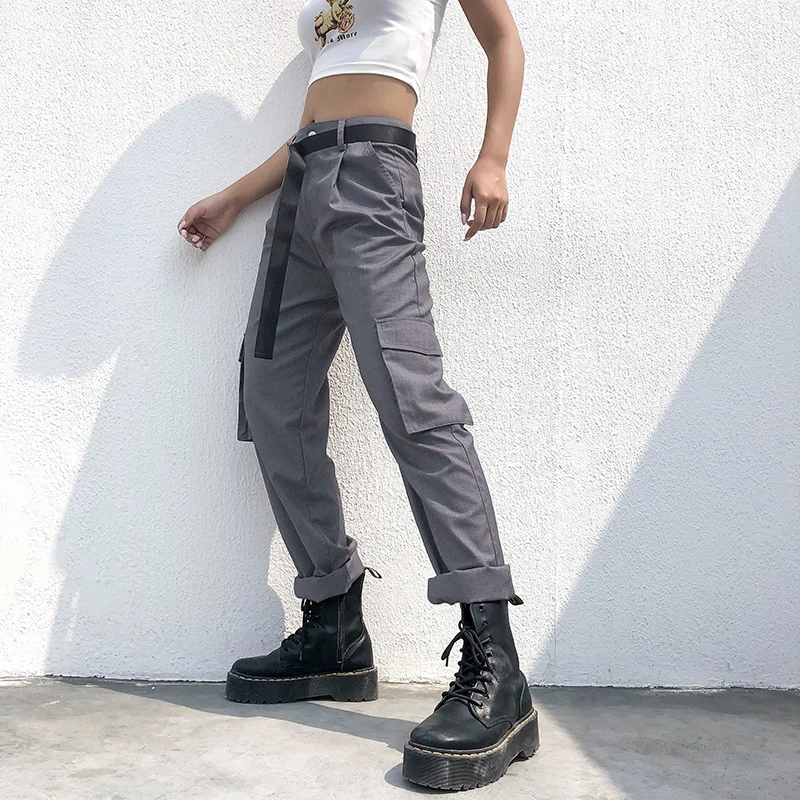 . (Zniżka 41%) Skup Tanie Sweetown szary urząd Lady eleganckie proste spodnie z wysokim stanem Streetwear wiosna jesień Zipper Fly odzież robocza eleganckie długie spodnie Ceny.