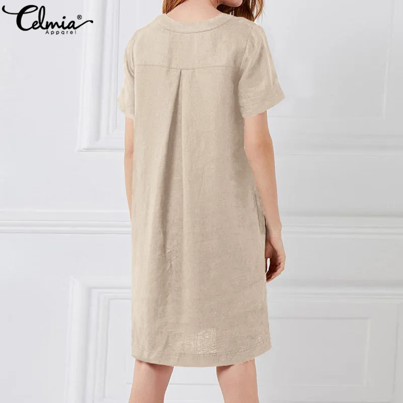 Special Offer Letnia lniana sukienka 2019 Celmia kobiety tunika koszulka z krótkim rękawkiem przycisk kobieta w stylu Vintage Casual Sundress Sarafans Vestidos S 5XL Discount 42% Today!