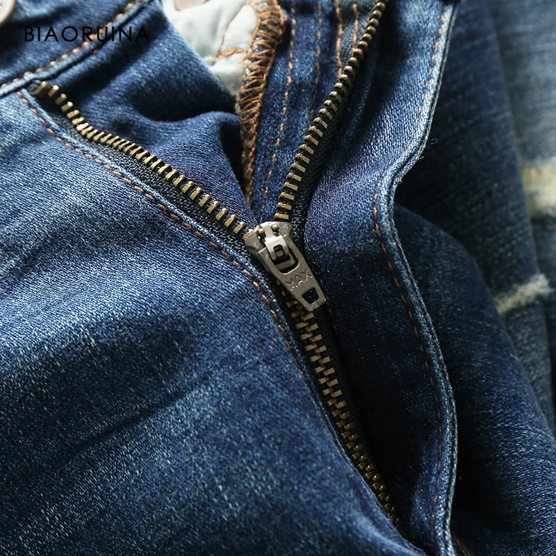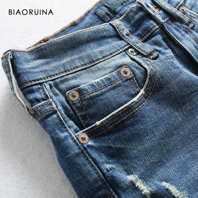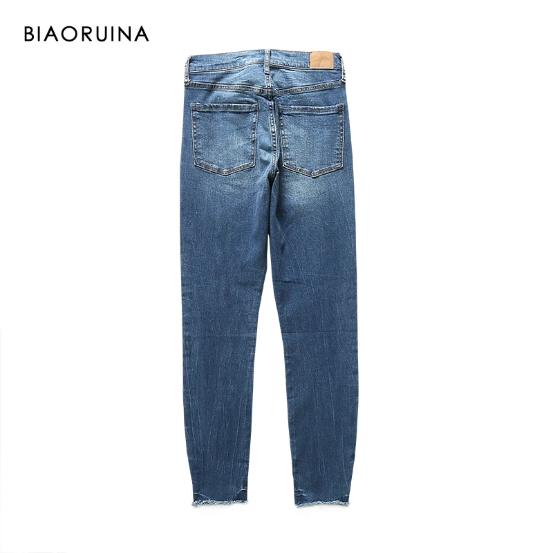 Special Offer BIAORUINA damskie codzienne pranie bielone dżinsy frędzle kobiece otwory zadrapania moda dżinsy rurki New Arrival Discount 46% Today!