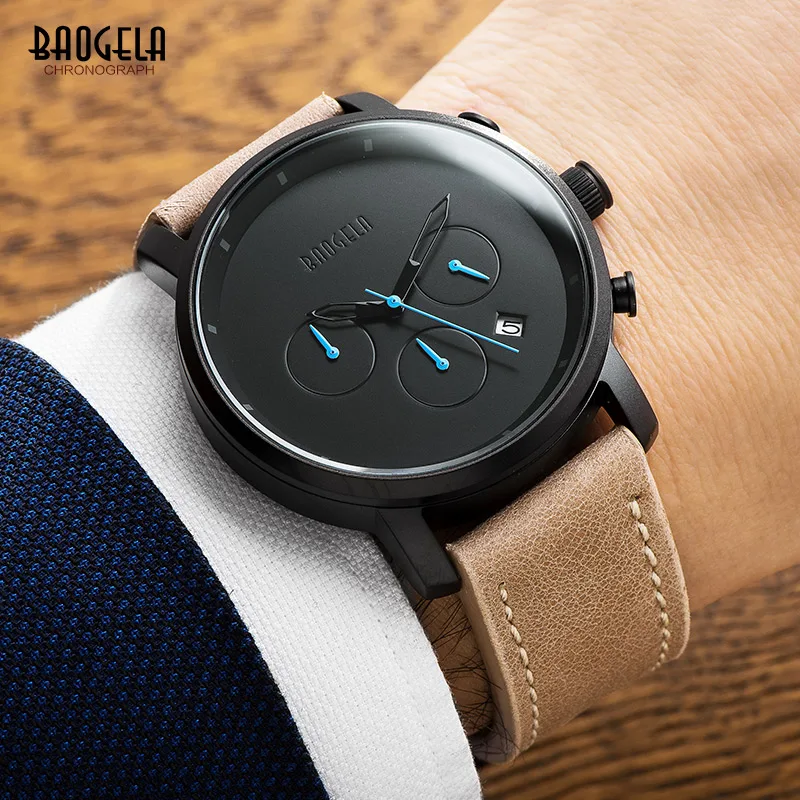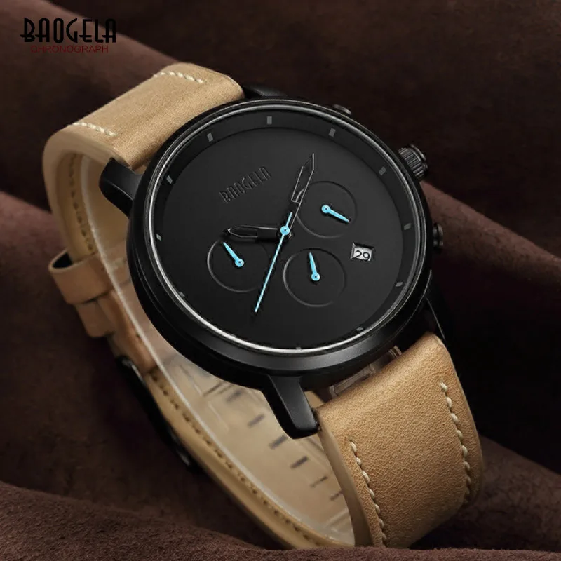 Special Offer BAOGELA męska proste minimalizm analogowe zegarki kwarcowe moda pasek skórzany na co dzień zegarek na rękę dla człowieka 1705 brązowy Discount 48% Today!