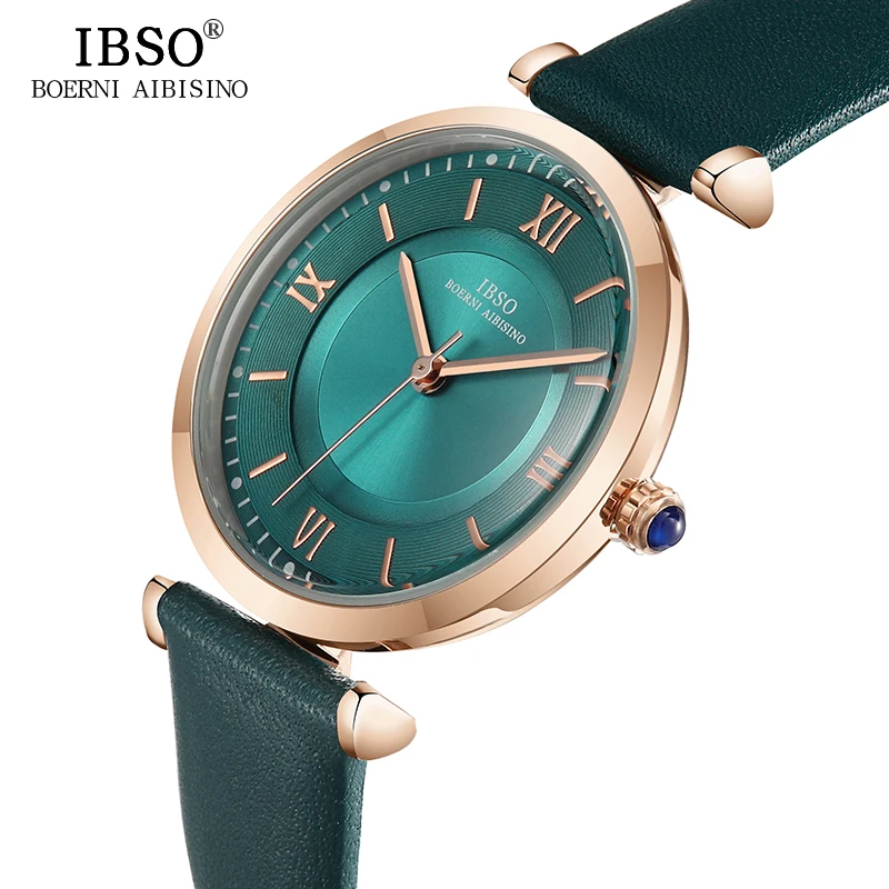 Special Offer IBSO nowy marka kobiety zegarki 2019 zielony prawdziwy skórzany pasek Reloj Mujer luksusowe panie zegarek kwarcowy kobiety Montre Femme Discount 49% Today!