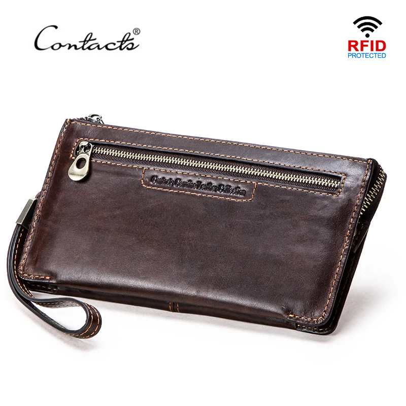 Special Offer CONTACT S marka mężczyźni portfele warzyw długa torebka skórzana mężczyzna torebka na telefon komórkowy opaska kieszeń na suwak posiadacz karty RFID Carteira Discount 51% Today!