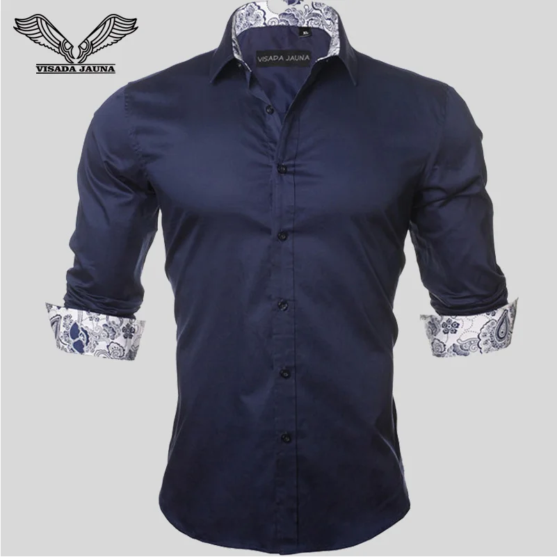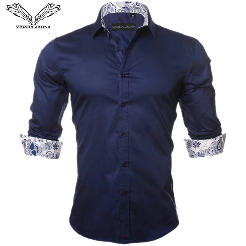 Special Offer VISADA JAUNA koszula męska 2019 Fashion Casual z długim rękawem solidna 100% bawełna Slim dopasowana sukienka koszule biznesowe mężczyźni odzież marki 5XL Discount 55% Today!