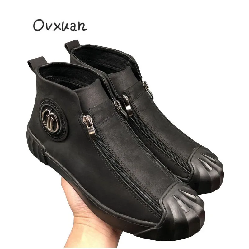 Product Name: Ovxuan buty turystyczne luksusowej marki metalowa gwiazda klamra Shell Toe podwójny zamek błyskawiczny wysokie ręcznie mokasyny akcesoria do motoru buty męskie