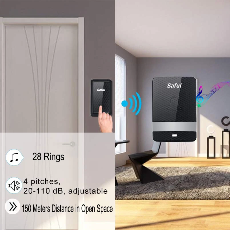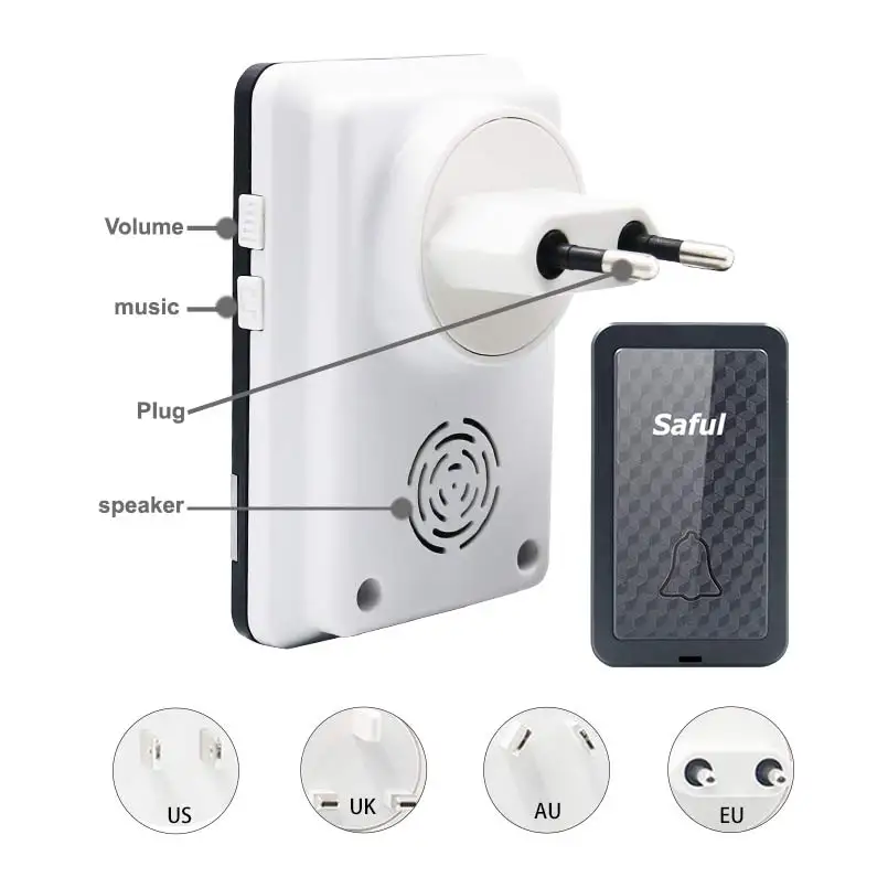 Product Name: Bezprzewodowy dzwonek Saful z własnym zasilaniem bez baterii wodoodporny zasięg 150M EU AU US UK wtyczka dzwonek do drzwi dla dojrzałych