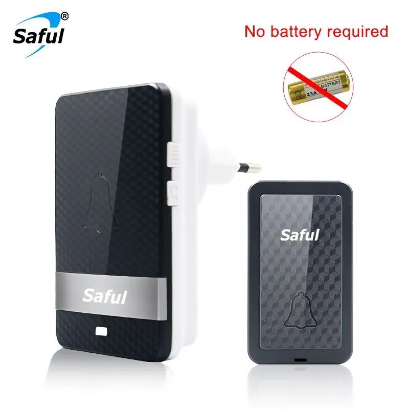 . (Zniżka 27%) Tanie Bezprzewodowy dzwonek Saful z własnym zasilaniem bez baterii wodoodporny zasięg 150M EU AU US UK wtyczka dzwonek do drzwi dla dojrzałych Cena.