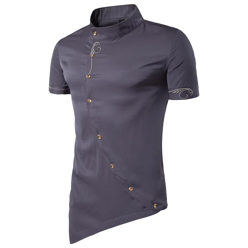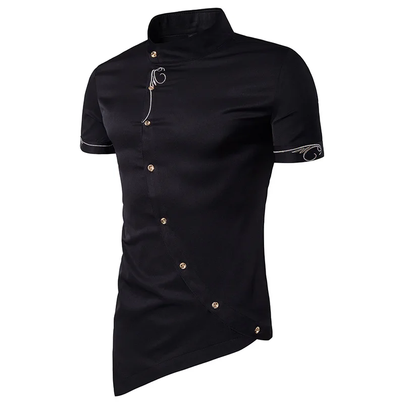 . (Zniżka 29%) Skup Tanie FFXZSJ marka męskie lato 2019 stand up koszula z krótkim rękawem, haftowane skos z przodu koszula na co dzień rozmiar europejski biust 100 128 Ceny.