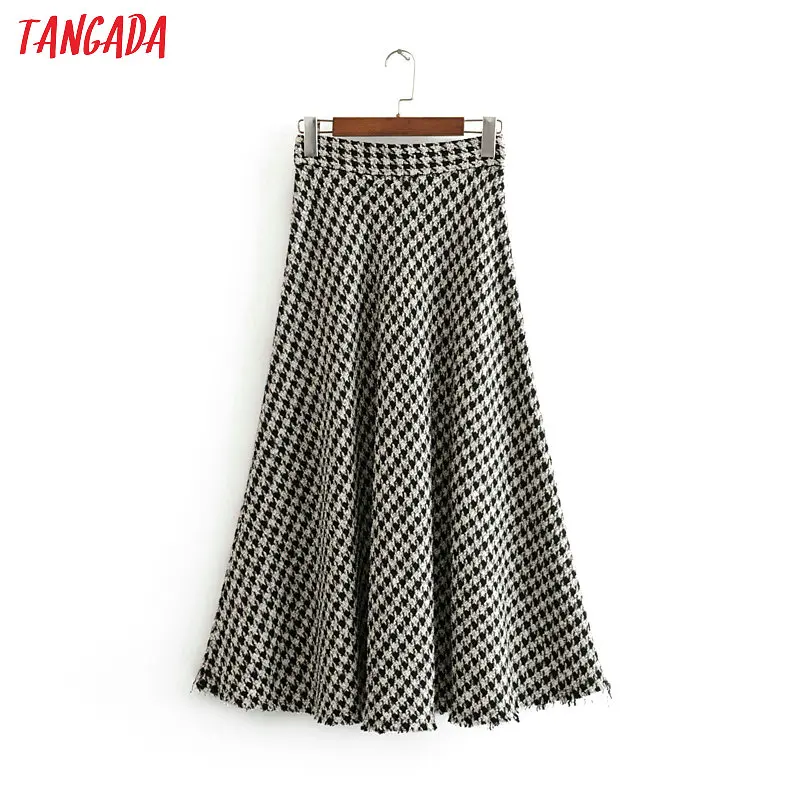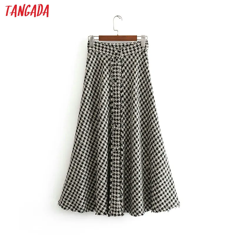 Special Offer Tangada kobiet plaid spódnica trzy czwarte zima elegancka moda damska grube długie spódnice dla kobiet faldas mujer 3H01 Discount 35% Today!