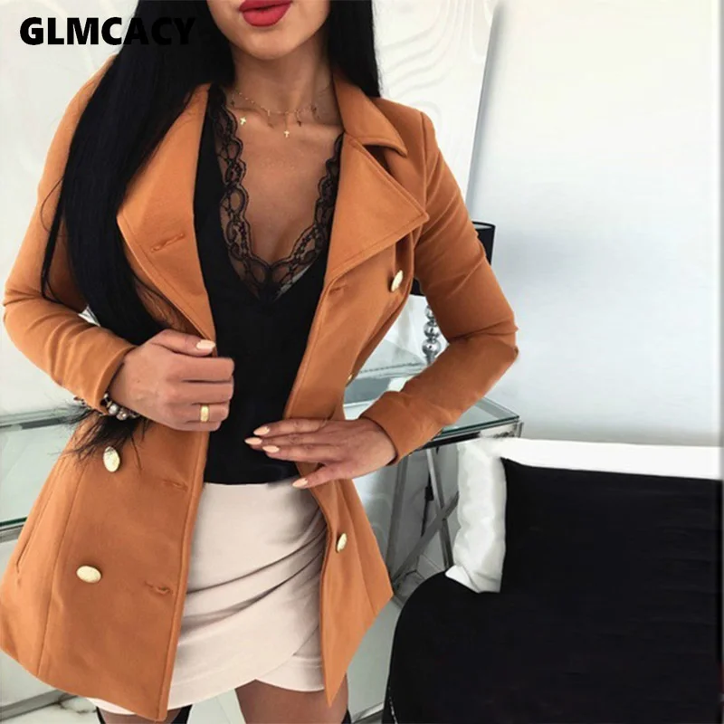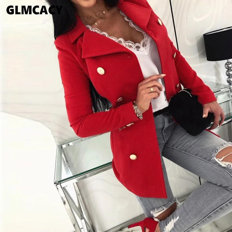 Product Name: Kobiety jesień Streetwear elegancki stałe podwójne piersi skręcić w dół kołnierz FSlim wełniany płaszcz elegancki OL odzież robocza