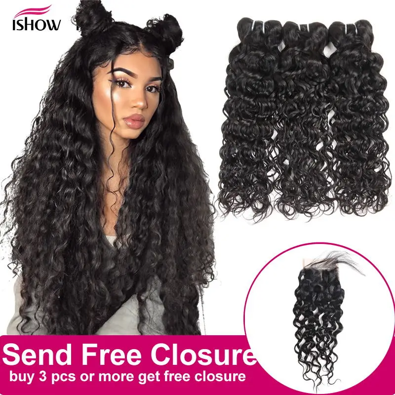 Special Offer Ishow Water Wave wiązki 100% wiązki ludzkich włosów Natural Color brazylijski włosy wyplata zestawy kup 3 lub 4 zestawy uzyskaj bezpłatne zamknięcie Discount 49% Today!