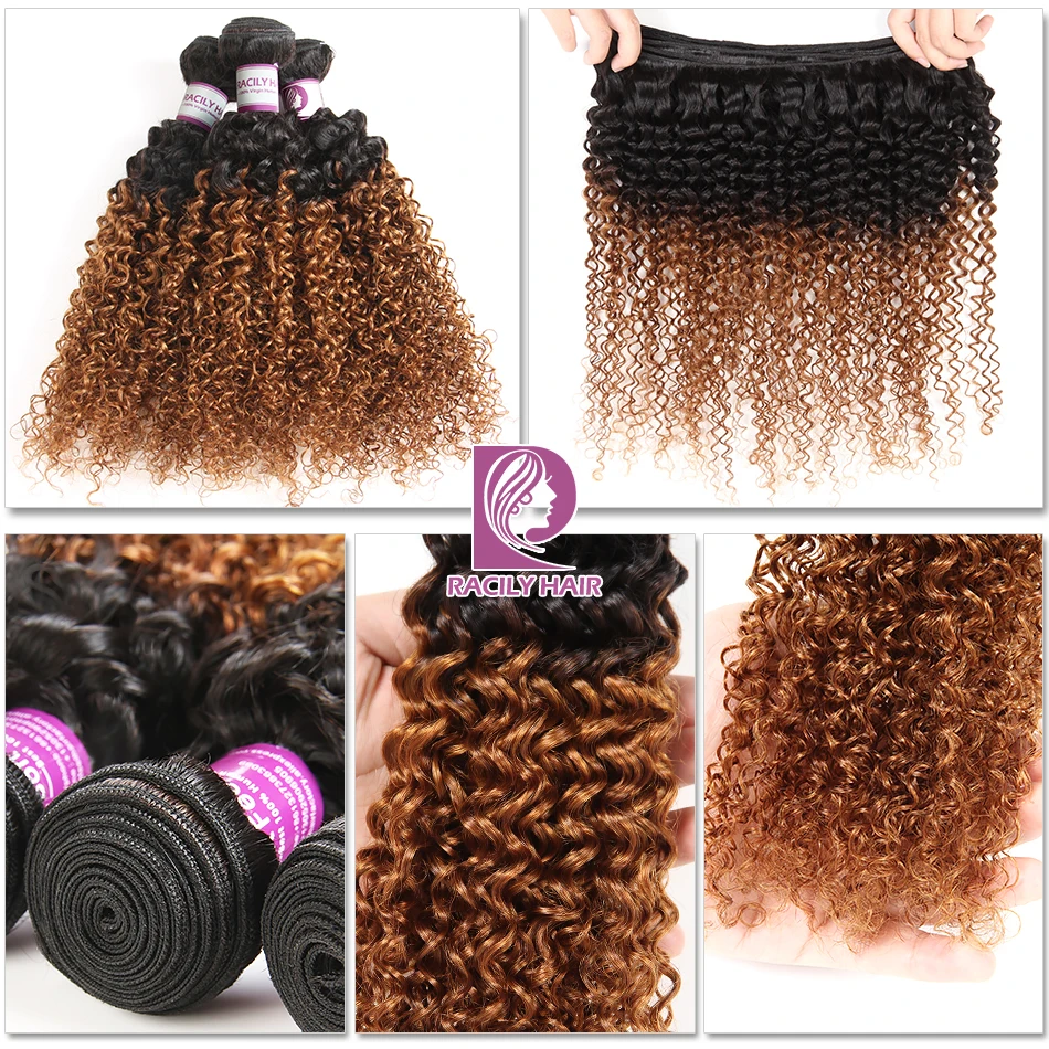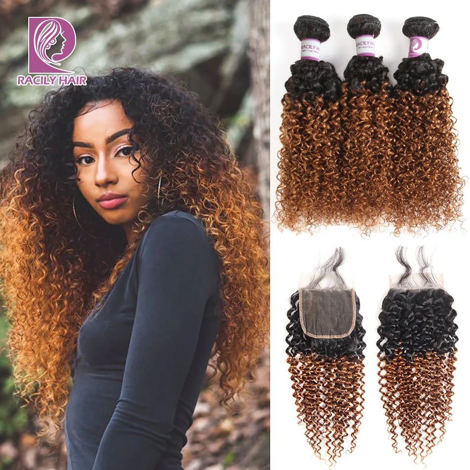 . (Zniżka 50%) Tanie Racily Hair Ombre brazylijski perwersyjne kręcone zestawy z zamknięciem Remy ludzkie włosy 3 4 wiązki z zamknięciem 1B 30 wiązki z zamknięciem Ceny.