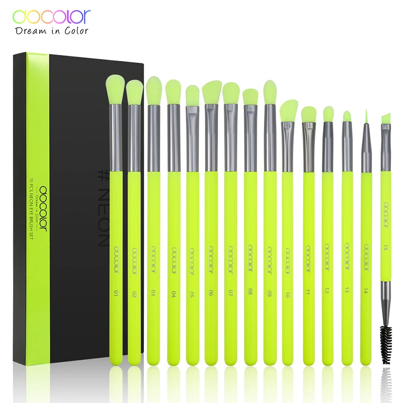 Special Offer Docolor 15 sztuk zestaw pędzli do makijażu cień do powiek mieszanie Eyeliner pędzle do makijażu brwi włosy syntetyczne cień do powiek Neon Brush Discount 50% Today!