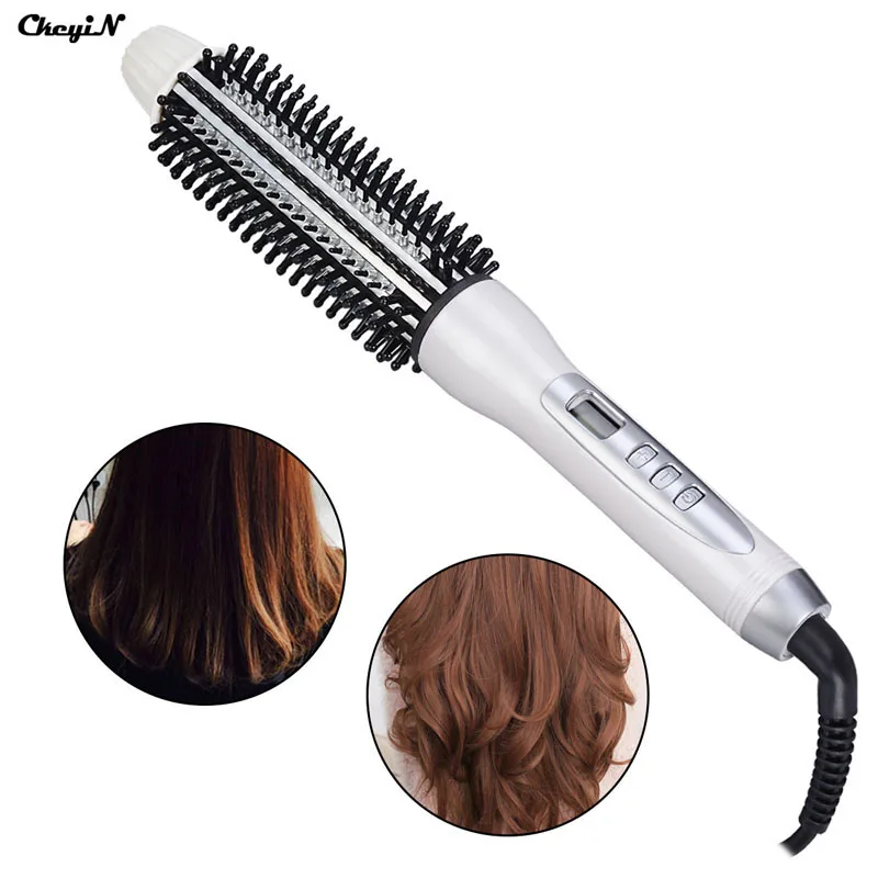 Special Offer Profesjonalna ceramiczna anionowa lokówka do włosów prostownica do gorącego grzebienia elektryczna szczotka do włosów LCD Curling Comb Round Large Roller Waver Discount 53% Today!