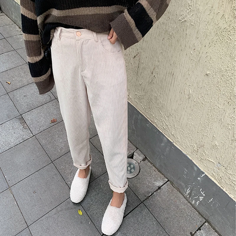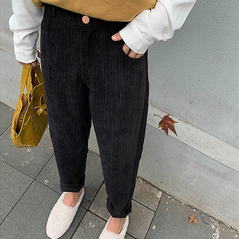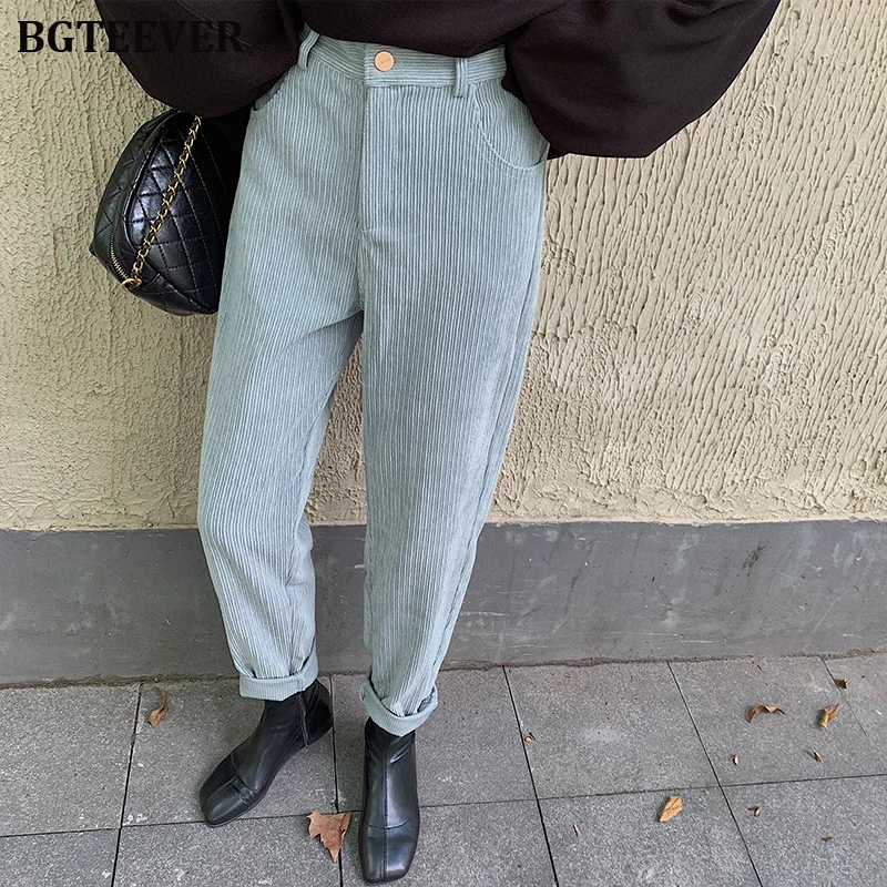Special Offer BGTEEVER jesienne zimowe damskie spodnie sztruksowe moda wysokiej talii kobiece proste spodnie Streetwear damskie spodnie Capris 2019 Discount 54% Today!