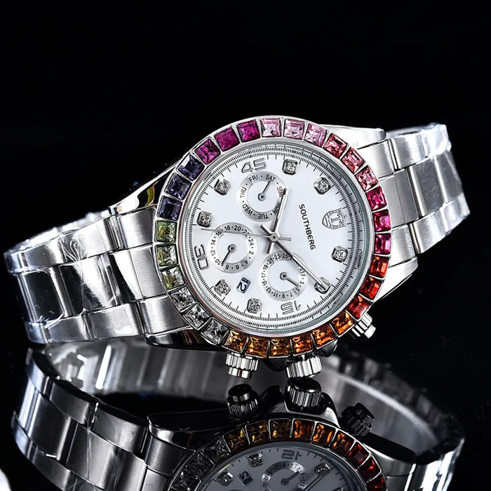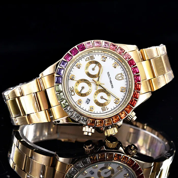 Product Name: Luksusowy zegarek SOUTHBERG mężczyźni GMT szkło data stal nierdzewna kobiety mężczyzna Sport kolor kwarcowy zegarki z kryształami górskimi Reloj Hombre